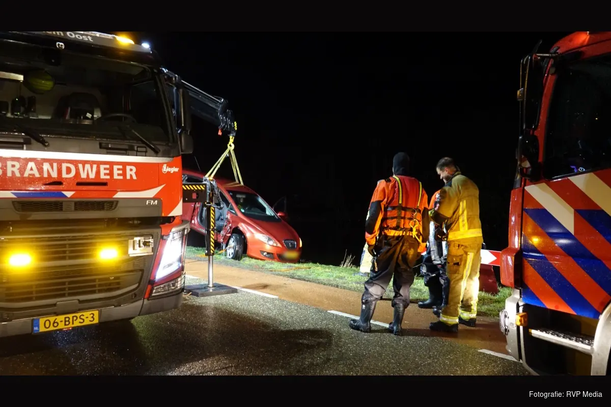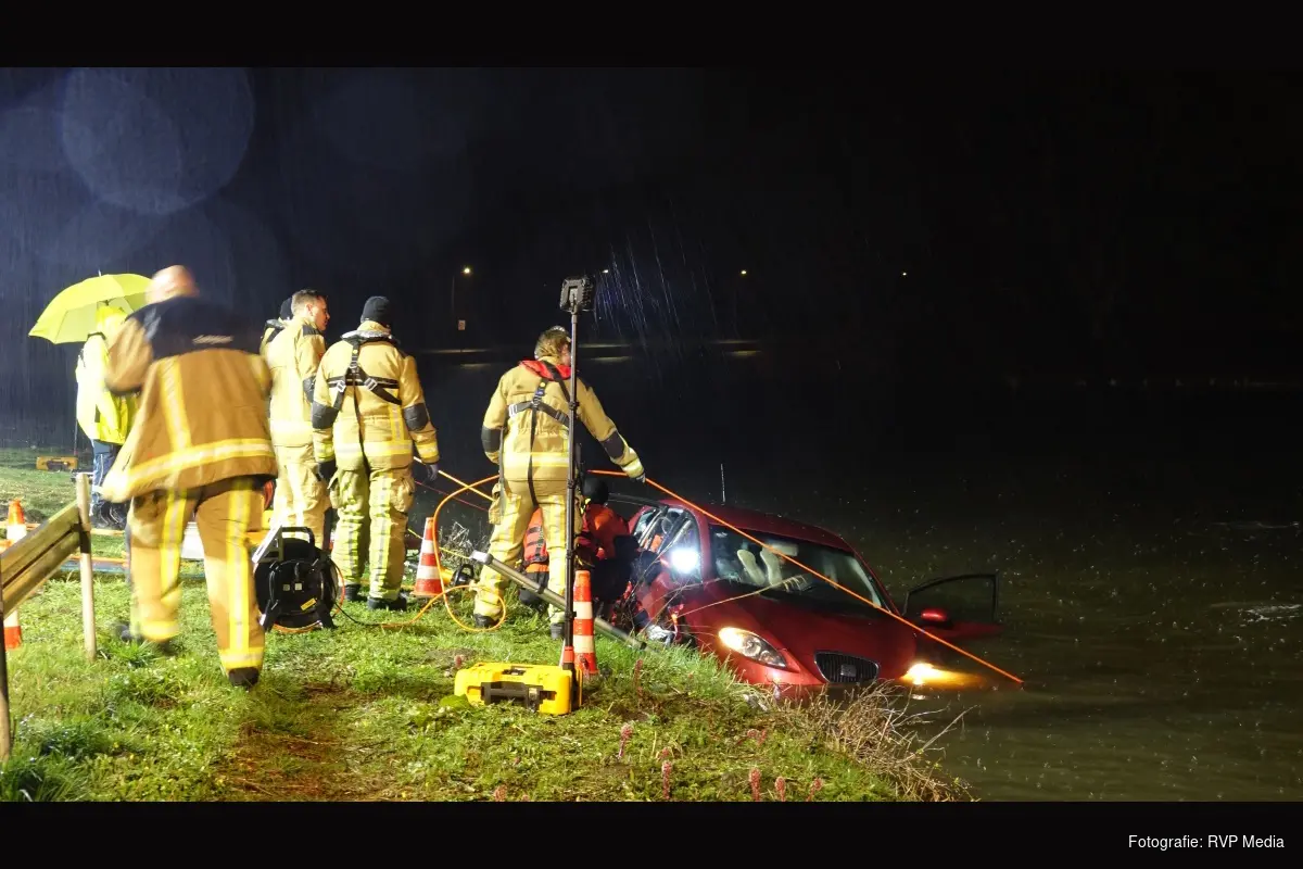 De brandweer heeft vervolgens de auto uit het water getakeld waarna deze is opgehaald door een bergingsbedrijf. De weg was vanwege het incident tijdelijk afgesloten voor het verkeer.