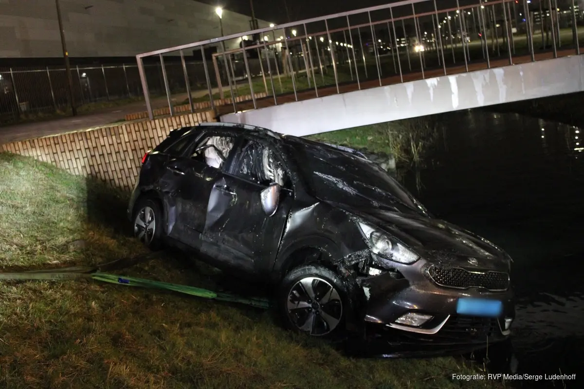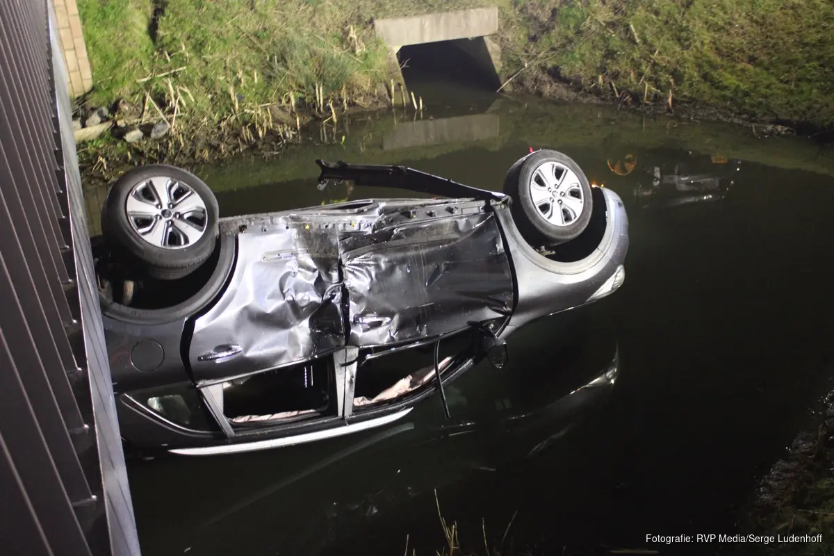 Twee voertuigen kwamen op de kruising met elkaar in botsing waarna één van de voertuigen over de kop in de sloot belandde.