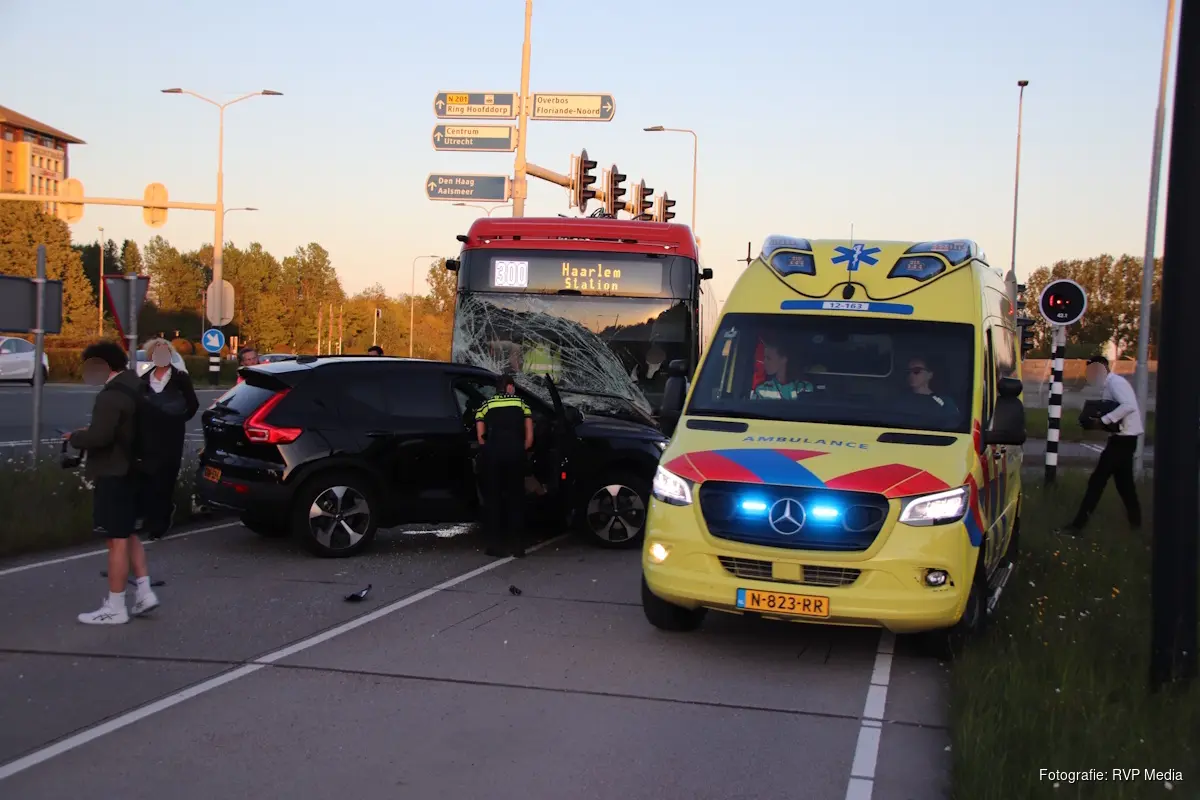 De twee inzittenden van de auto raakten gewond bij de aanrijding. In de bus raakte één persoon lichtgewond.