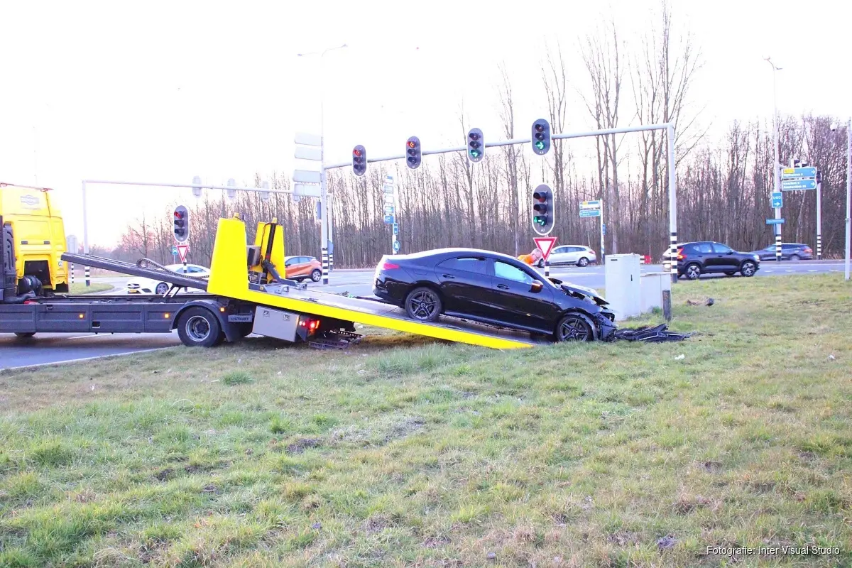 Politieagenten hebben de toedracht van het ongeval onderzocht. Een berger heeft de zwaar beschadigde auto afgesleept.