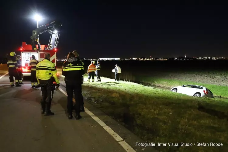 LIJNDEN - Vrijdagavond rond 18.30 uur is langs de oprit van de A9, vlakbij de Schipholweg in Lijnden een auto te water geraakt. In een scherpe bocht verloor de bestuurder vermoedelijk de macht over het stuur.