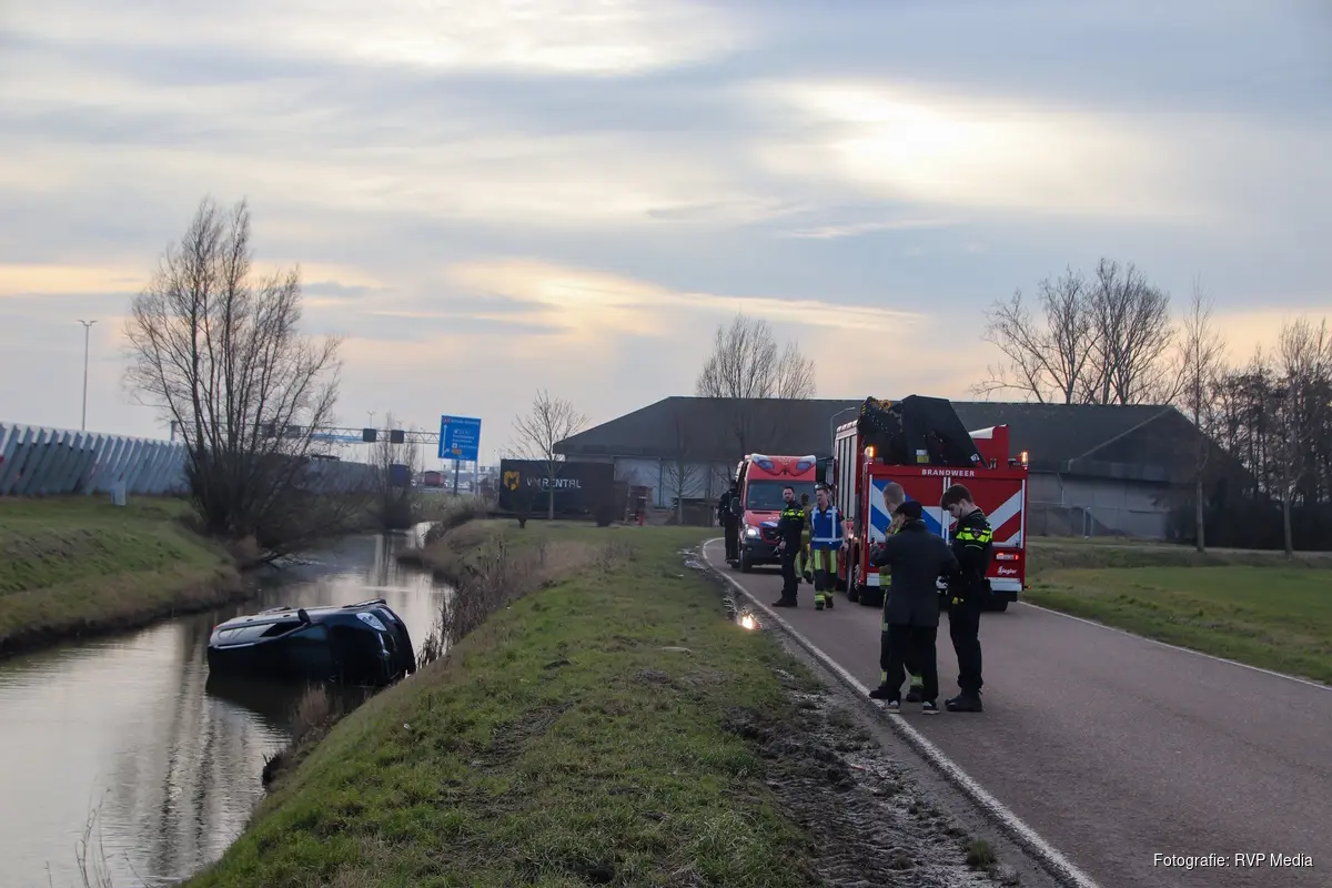 Een bergingsbedrijf zal de personenauto uit de sloot takelen en afslepen.