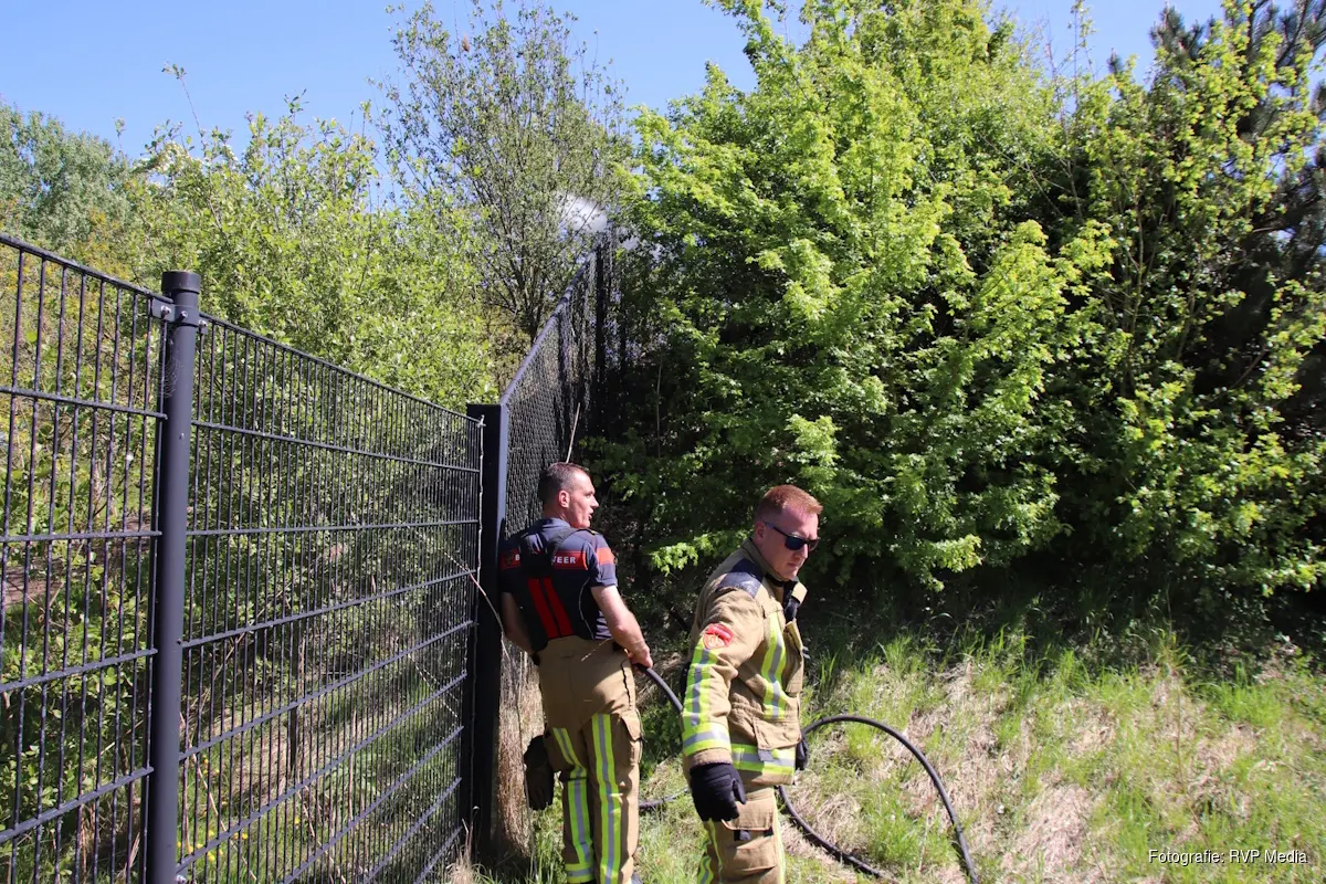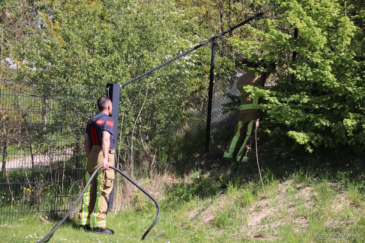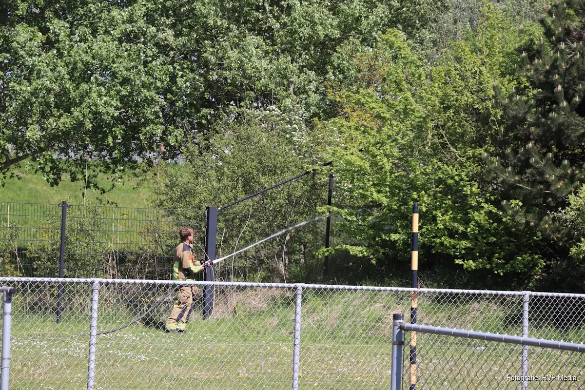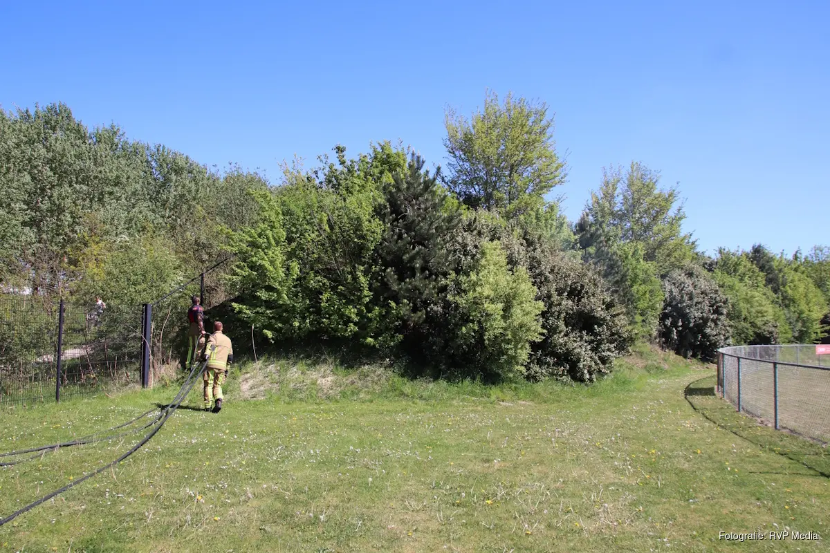 Ter plaatse bleek dat er brand woedde in de bosschages op het terrein. De brandweer reed met een tankautospuit het terrein op en wist het vuur snel te blussen.