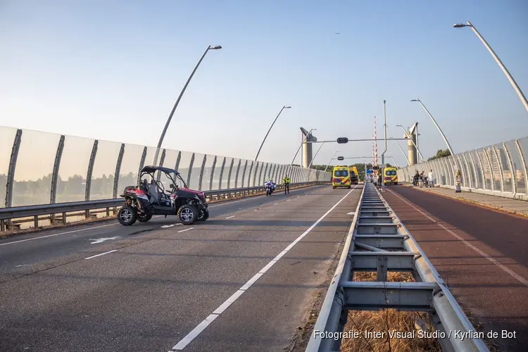 Beide voertuigen zijn zwaar beschadigd en kunnen niet meer verder rijden. Een berger heeft de auto en motor buggy weggesleept.