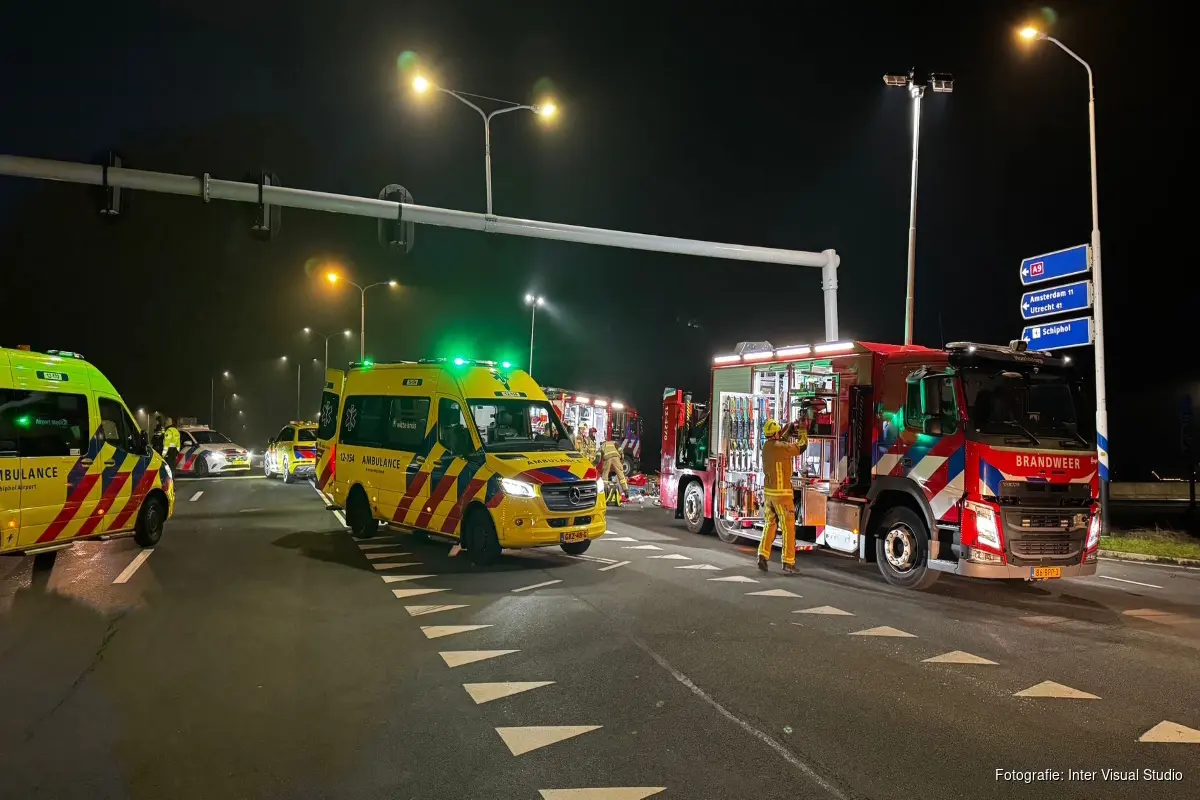 LIJNDEN - Drie personen zijn zaterdagochtend rond 06.00 uur zwaargewond geraakt bij een ongeval op de kruising van de Amsterdamse Baan en de oprit naar de A9 bij Lijnden.