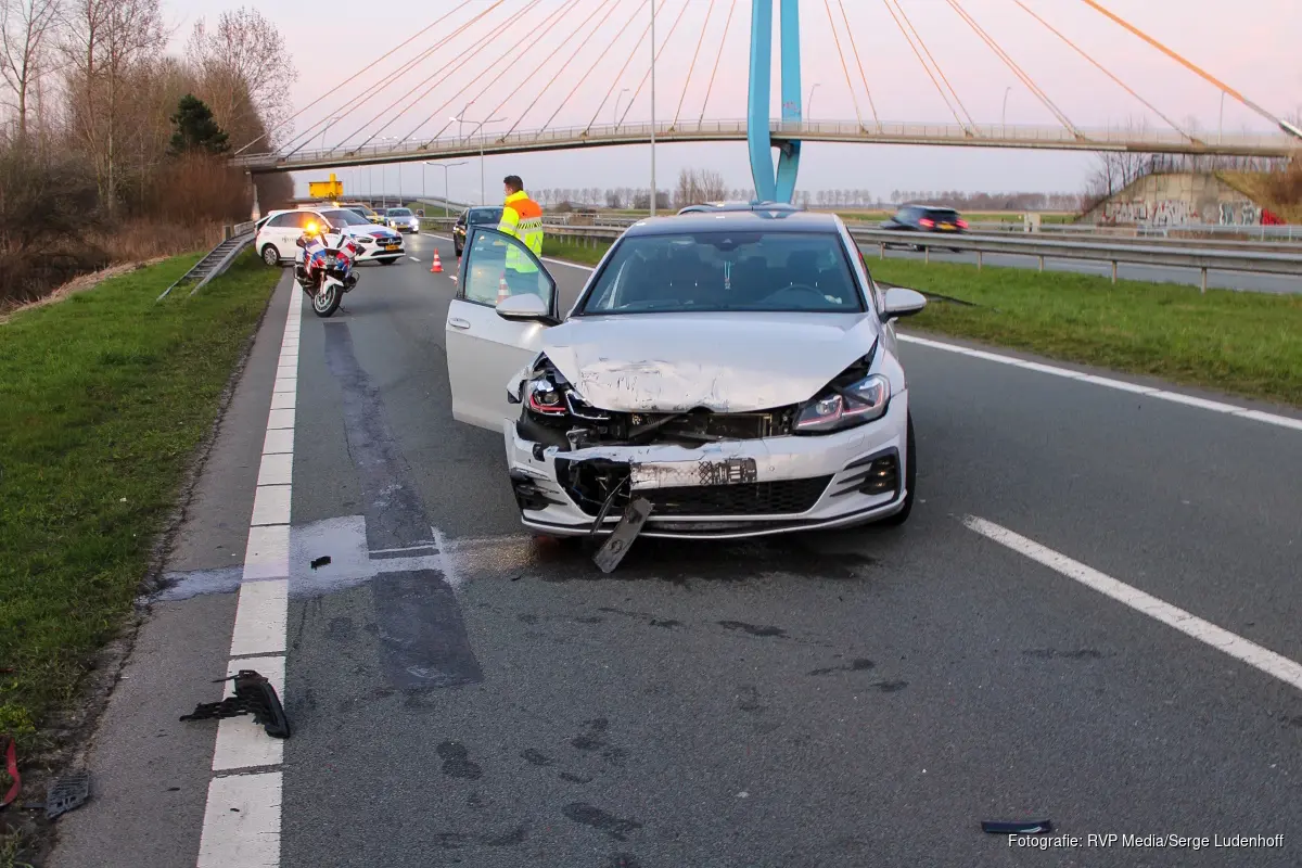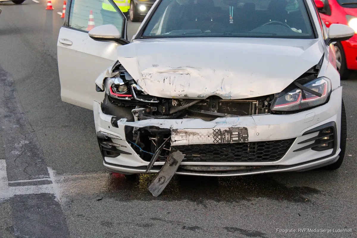 Een personenauto botste door nog onbekende oorzaak achterop een bestelbus. De beide voertuigen kwamen vervolgens midden op de weg tot stilstand.