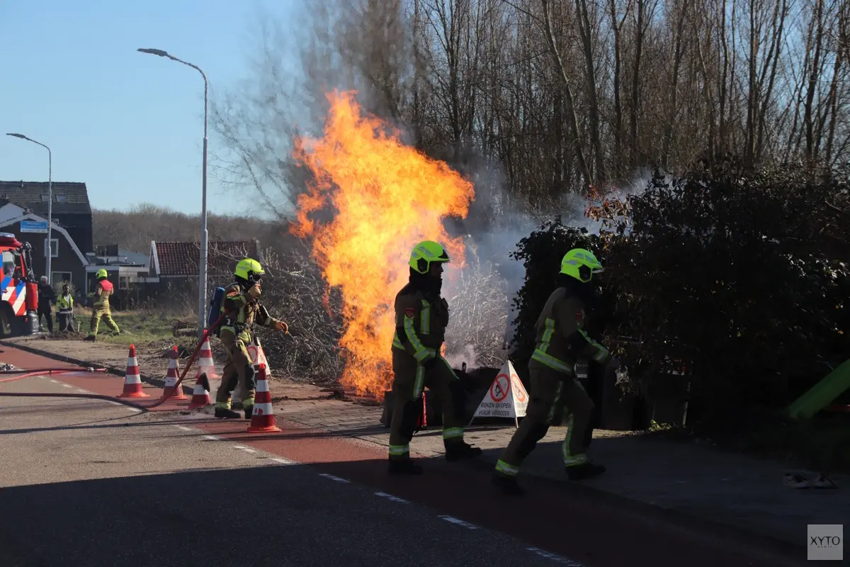 Bij aankomst van de brandweer was er een flinke hoge vlam zichtbaar naast de weg. Tijdens graafwerkzaamheden bleek de gasleiding te zijn geraakt waardoor deze lek raakte en vervolgens het gas in brand vloog. Liander is opgeroepen om de gasleiding op een andere locatie af te sluiten, tot die tijd zal het blijven branden. De brandweer staat paraat met water om de omgeving nat te houden.