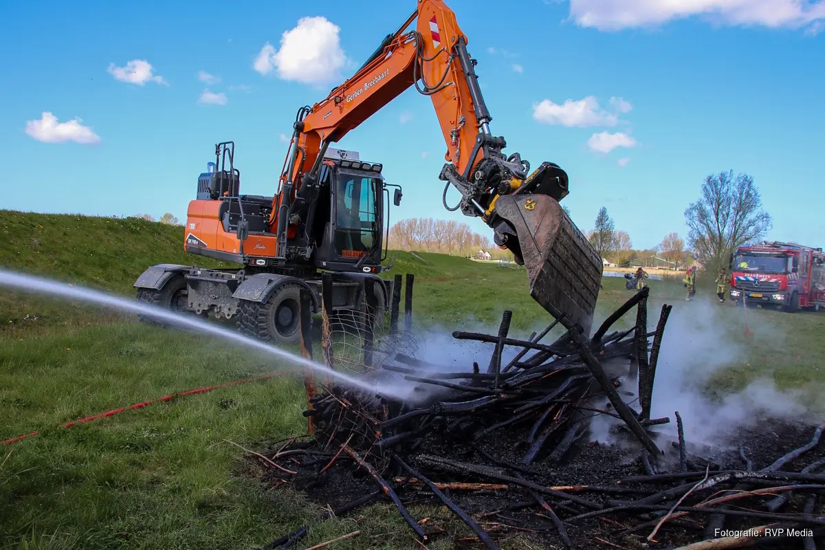 Ter plaatse bleek er een grote stapel met snoeihout in brand te staan wat daar is geplaatst als insectenhotel. Een toevallig voorbijrijdende graafmachine welke de brandweer bezig zag schoot vervolgens te hulp en heeft de stapel uit elkaar gehaald zodat deze makkelijker te blussen was voor de brandweer.