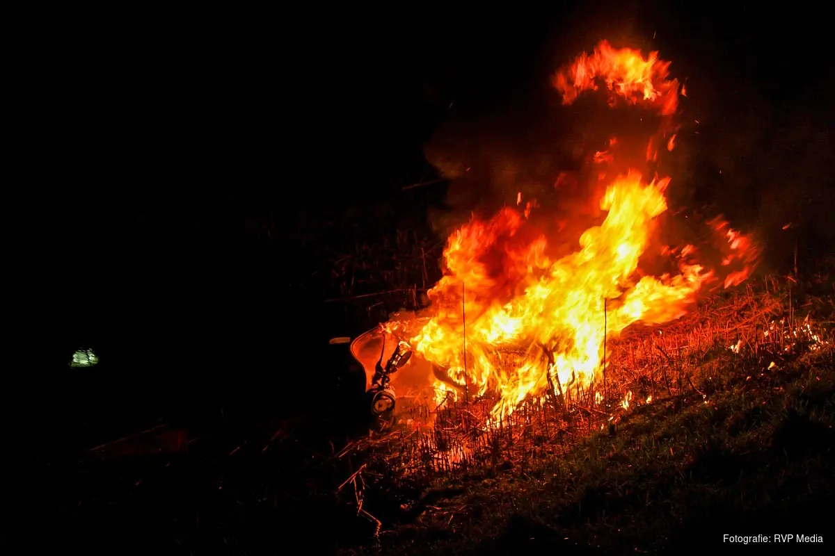 Een bestuurder van een scooter merkte dat deze tijdens het rijden begon te branden. In een poging om te proberen te brand te blussen werd de scooter deels in de sloot heeft gelegd. Dit gaf helaas niet het gewenste resultaat.