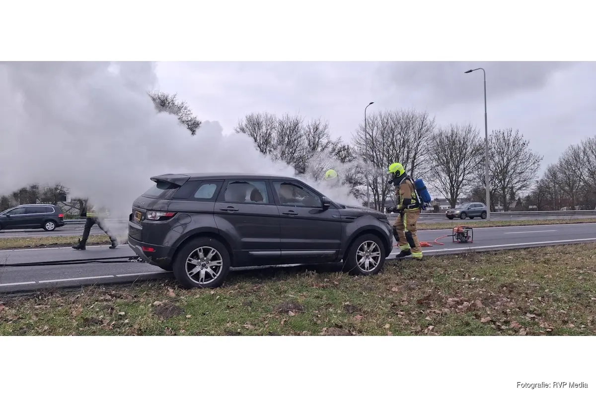 HOOFDDORP – Op de N201 (Weg om de Noord) in Hoofddorp is maandagmiddag een auto tijdens het rijden volledig uitgebrand.