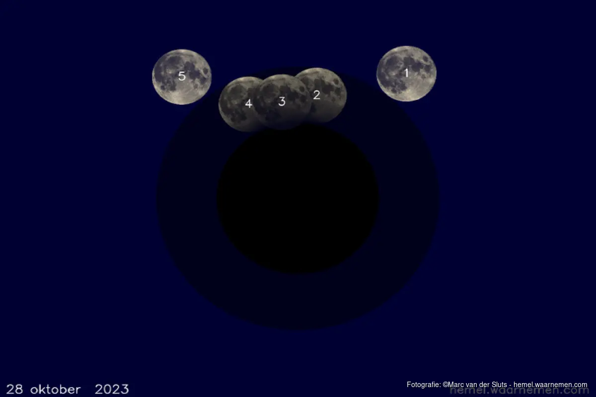 Tijdens het maximum van de eclips, rond 22.15 uur, staat de maan op circa 35° boven de oostzuidoostelijke horizon en is hij dus goed zichtbaar. Er is dan duidelijk een donker hapje (ongeveer 13%) uit de onderkant van de maan genomen. Naar boven toe wordt het maanoppervlak steeds lichter.