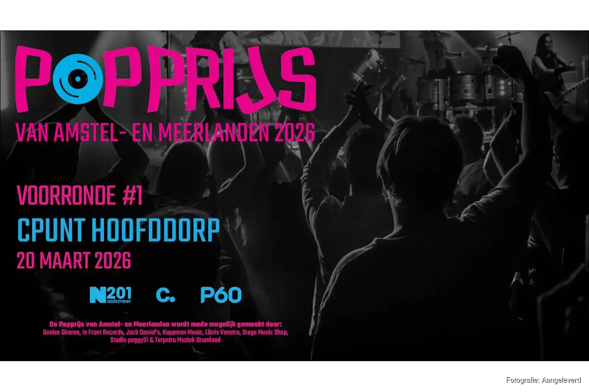 HOOFDDORP - De Popprijs van Amstel- en Meerlanden is terug! Met trots kondigen we de eerste voorronde aan, die plaatsvindt in Cpunt Hoofddorp. Vijf van de tien bands strijden hier tegen elkaar voor een geweldig prijzenpakket én eeuwige roem. Een deskundige jury beoordeelt tijdens deze eerste voorronde welke acts doorgaan naar de finale. Dit is pas het begin, want er staat nog een tweede voorronde in de N201 op het programma - houd onze site en socials dus goed in de gaten voor meer updates.
