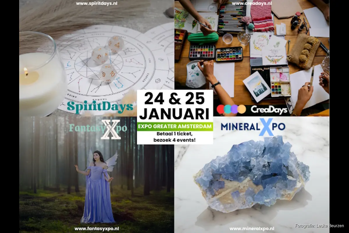 VIJFHUIZEN - Op 24 en 25 januari 2026 organiseert Leuke Beurzen B.V. een nieuw en veelzijdig publieksevenement onder het motto "één ticket, vier events". Hiermee krijgen bezoekers met één entreeticket toegang tot maar liefst vier compleet verschillende events onder één dak, namelijk: SpiritDays, MineralXpo, CreaDays, en FantasyXpo.