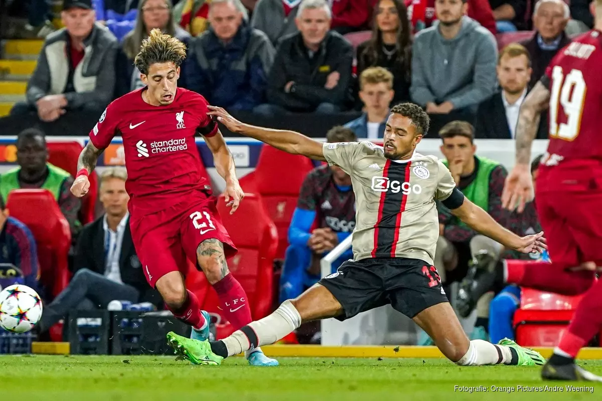 Liverpool won dit seizoen maar twee van de zes competitiewedstrijden en werd vorige week nog afgedroogd door Napoli. De ploeg leek op voorhand dus kwetsbaar maar daar was niet veel van te merken. Liverpool zocht direct de aanval en Ajax kwam er niet aan te pas.Na ruim een kwartier liep Salah weg bij Blind en opende de score..Jota en met name Diaz waren daarna dicht bij een tweede Engelse treffer. Na een klein half uur kwam Ajax uit het niets op gelijke hoogte toen Kudus met een weergaloze knal de kruising vond. Liverpool ging meteen op jacht naar de 2-1, maar zowel Van Dijk als Alexander- Arnold vonden Pasveer op hun weg.