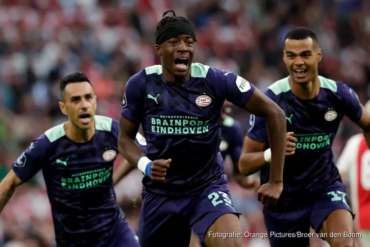 AMSTERDAM - De eerste prijs van dit seizoen, de Johan Cruijff Schaal, gaat naar Eindhoven. Een week voor de start van de competitie wist PSV zaterdagavond met speels gemak landskampioen Ajax te verslaan in een goed gevulde Johan Cruijff Arena. Na twee goals van Madueke, gevolgd door een rode kaart voor Tagliafico liepen de Amsterdammers voortdurend achter de feiten aan.